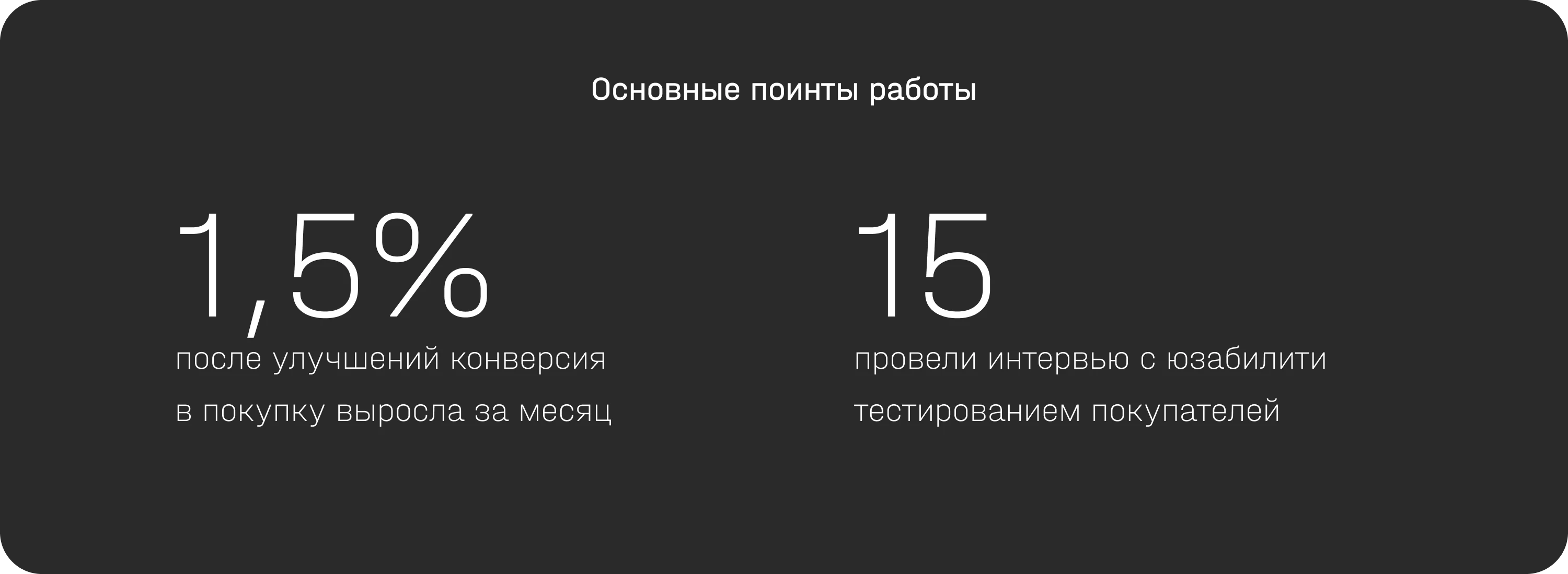 Подготовили документ с гипотезами по улучшению интерфейса — для сайта и рассылок. Клиент забрал гипотезы для сайта, мы тестировали изменения в рассылках. На 1,5% после улучшений конверсия в покупку выросла за месяц.